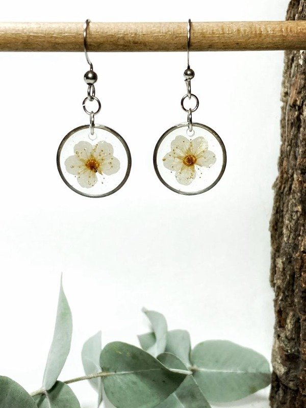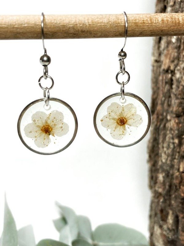 Aros de acero quirúrgico con flores de Corona de novia encapsuladas en resina