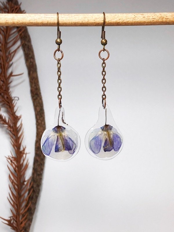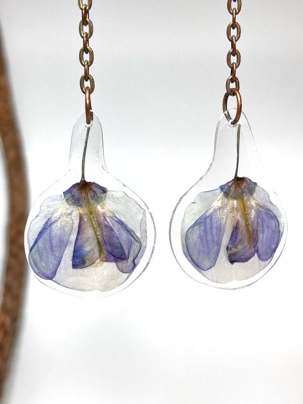 Aros de acero quirúrgico con flores de Glicina encapsuladas en resina
