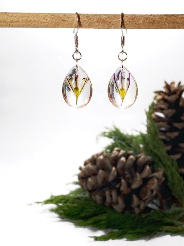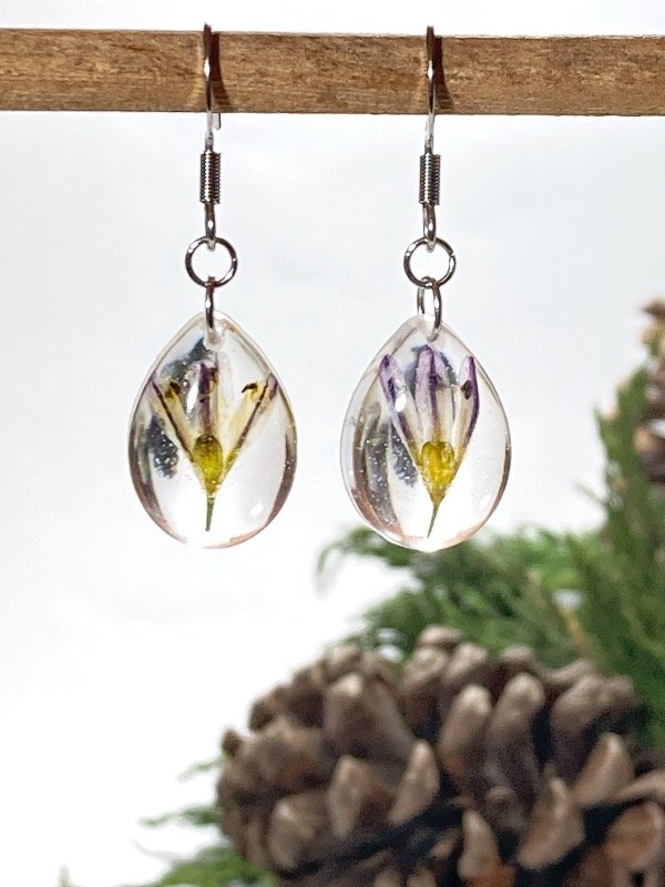 Aros de acero quirúrgico con flores Lágrima de la Virgen encapsuladas en resina