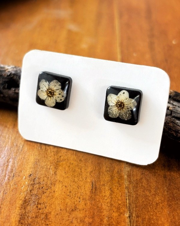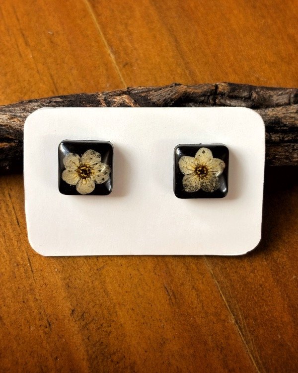 Aros pasantes de acero quirúrgico con flores de Corona de novia encapsuladas en resina