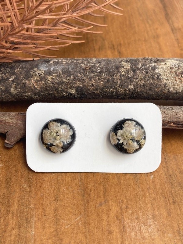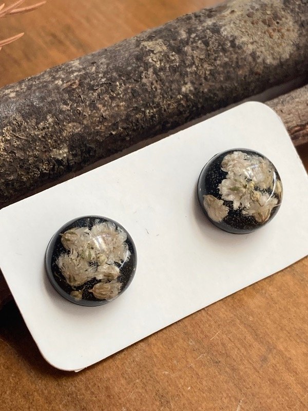 Aros pasantes de acero quirúrgico con flores de Nubes encapsulados en resina.