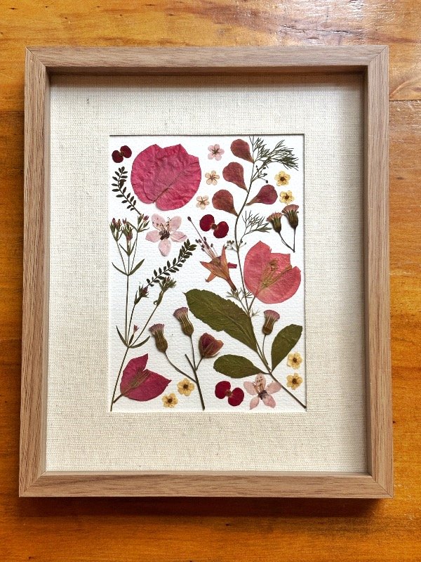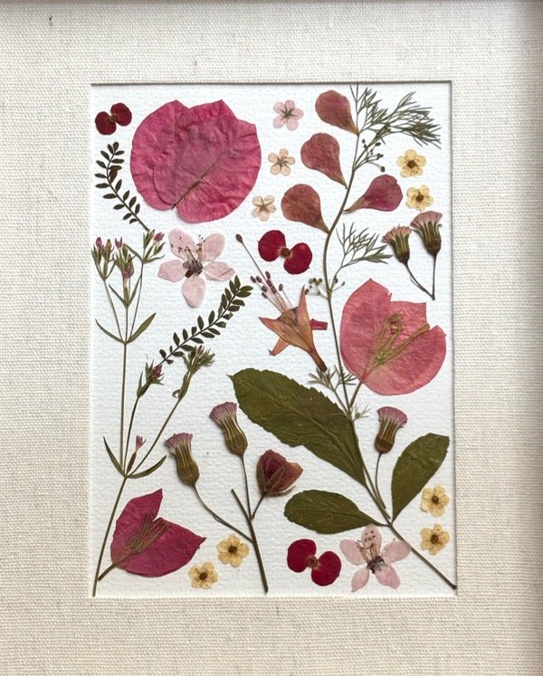 Cuadro con flores naturales prensadas sobre papel especial de 15 x 21 cm