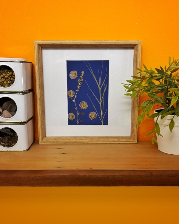 Cuadro con flores naturales prensadas sobre papel especial de 19 x 19 cm