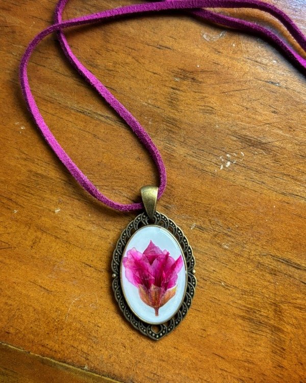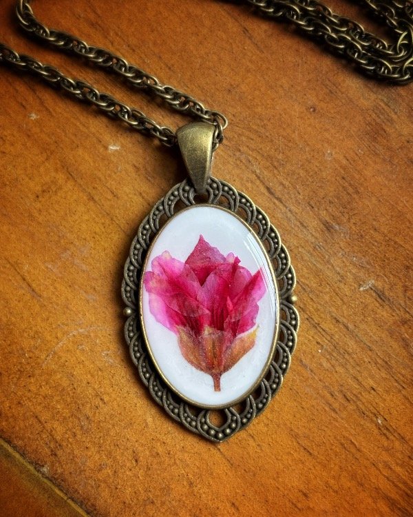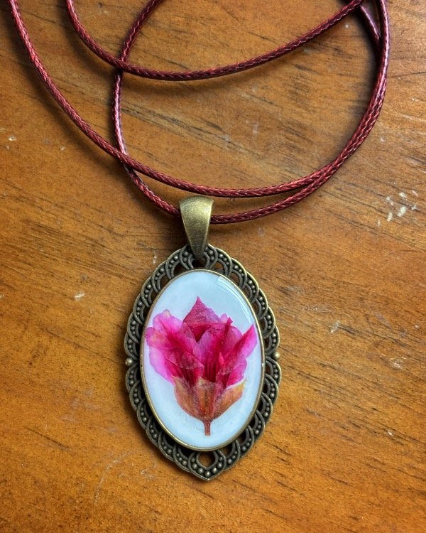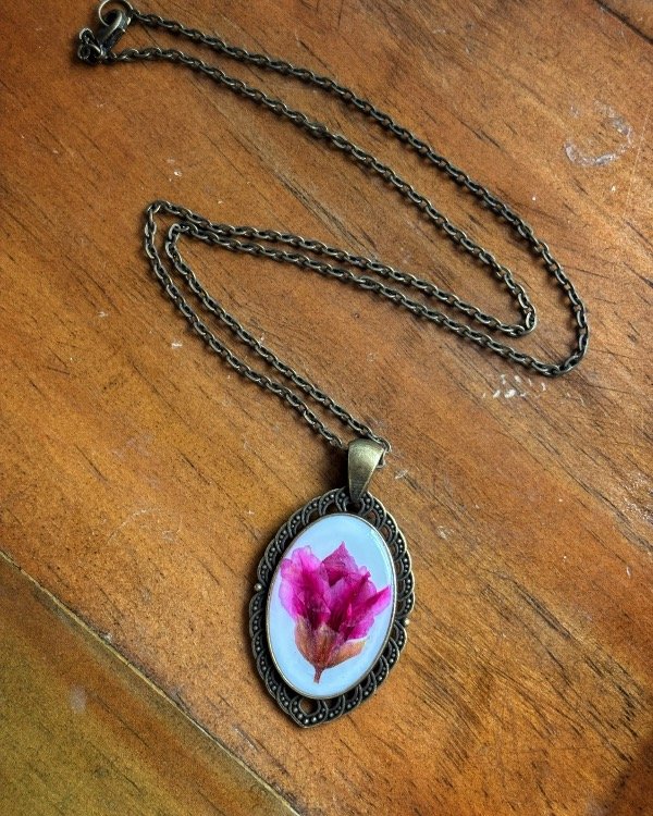 Podés elegir entre: ; cadenita trenzada bronce de 70cm (foto 1 y 2); Cordón de gamuza Violeta (foto 3); Cordón de cuero rojo (foto 4); o cadenita bronce 45cm (foto 5)