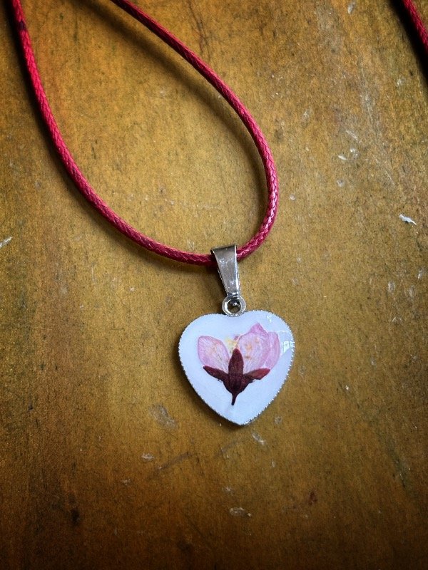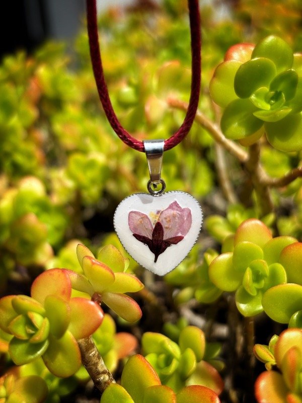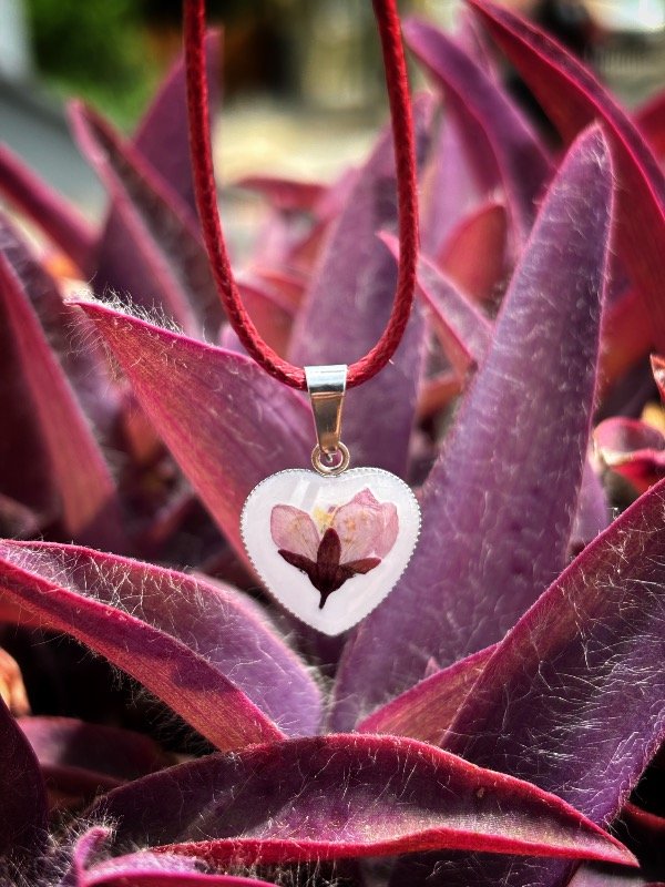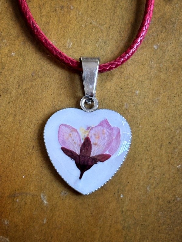 Dije en Acero quirúrgico con de flor de Ciruelo encapsulados en resina