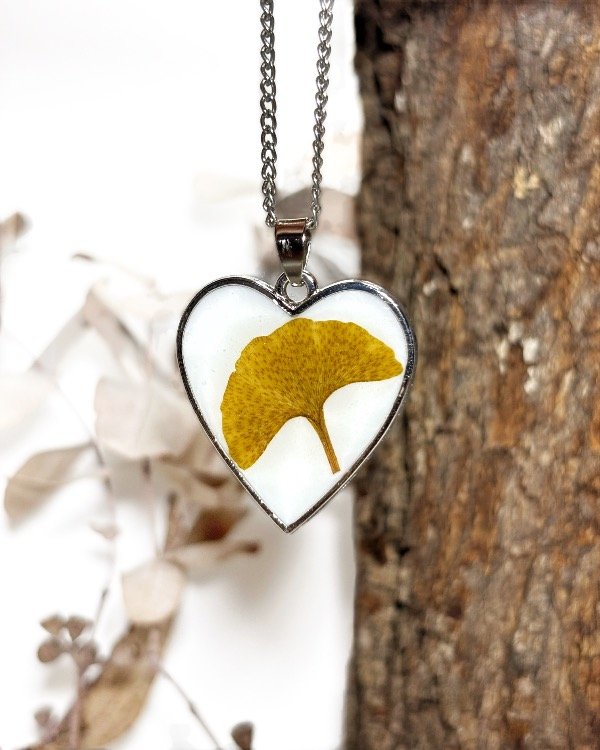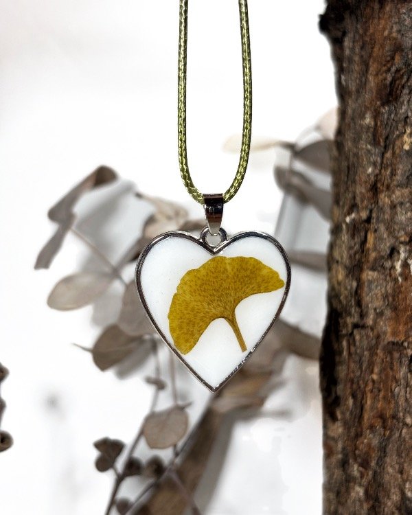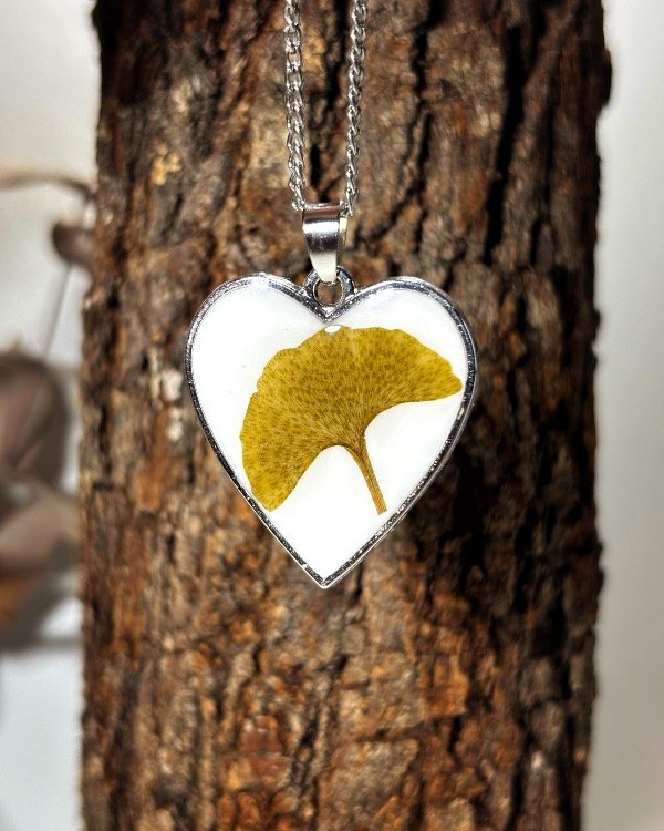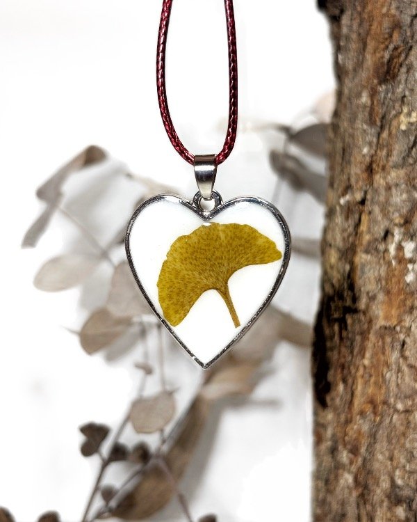 Dije con marco metálico plateado y hoja de Ginkgo Biloba
