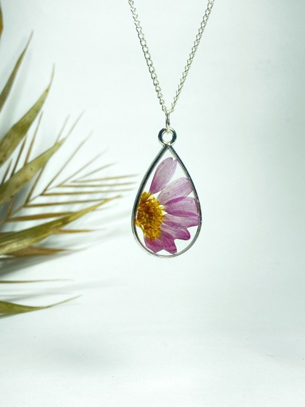 Dije con marco metálico plateado y fragmento de Margarita