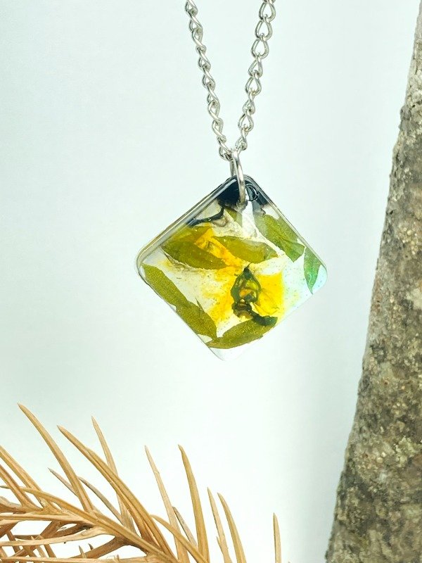 Dije con fragmentos de Jacarandá y resina pigmentada
