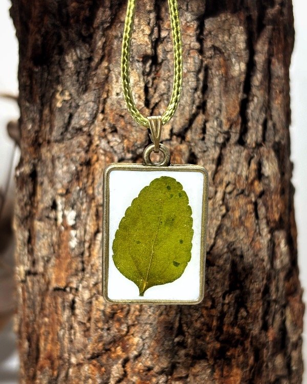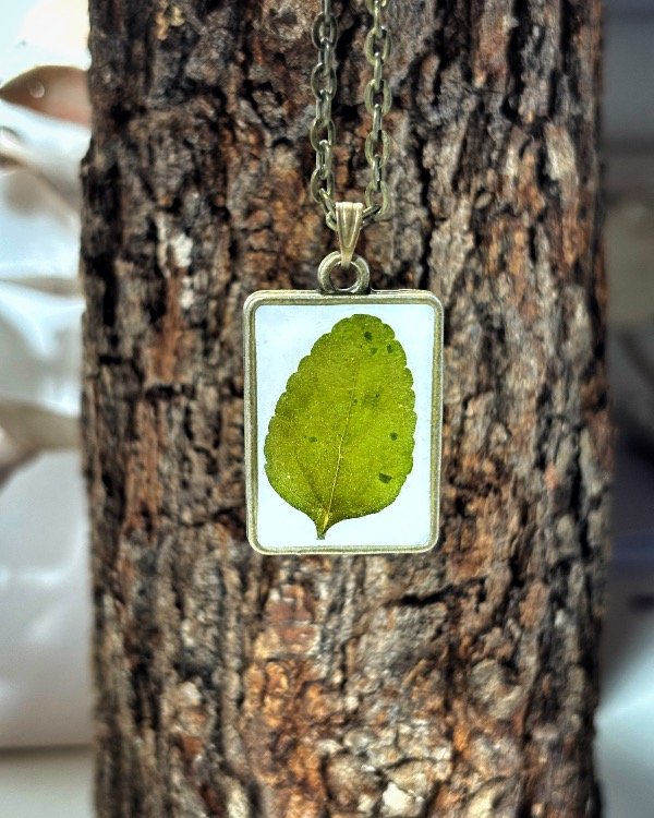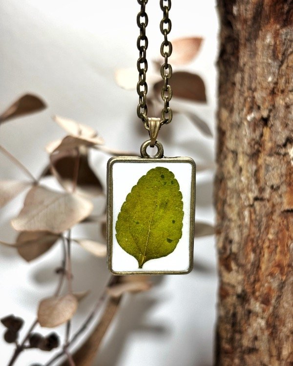 Dije con marco metálico bronce y hoja de Salvia Rosa